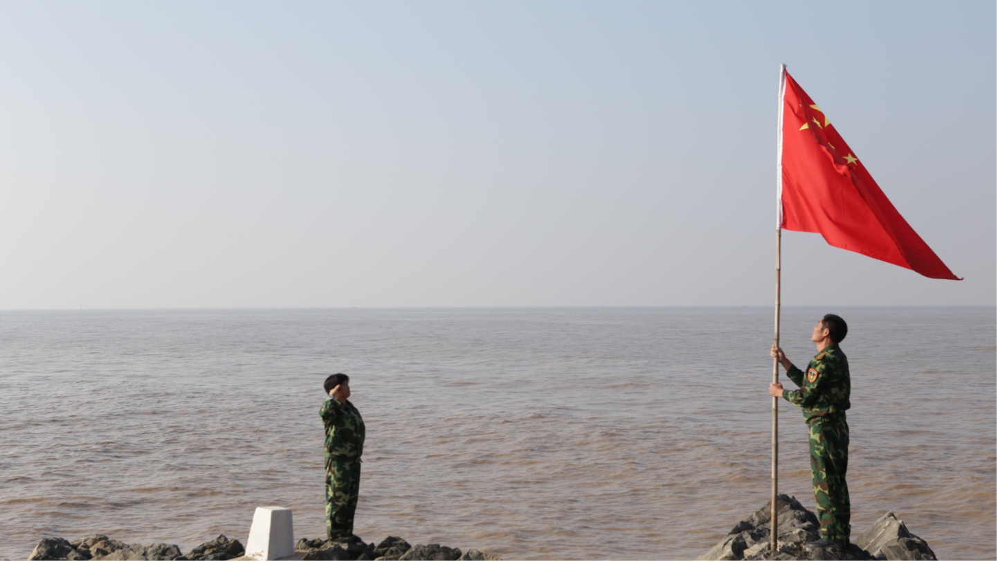 第二天早晨,父亲带着王志国在岛上升旗。“早晨在山顶,父亲像旗杆一样矗立着。面对着五星红旗和两鬓斑白的父亲,我开始重新考虑自己的人生道路。作为儿子,我应该像父亲那样,用一腔赤诚守护这面旗、这座岛、这片海。”